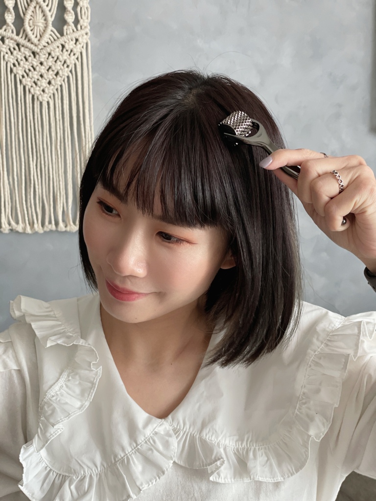 拿著頭皮按摩滾輪也很順手,後方的頭皮也很順的按摩到,整個循環變好就能擁有健康的頭皮喔